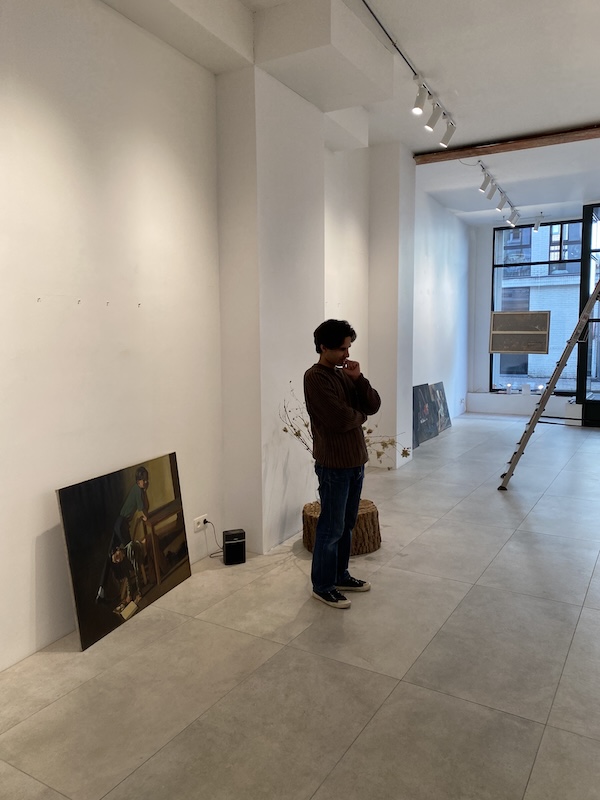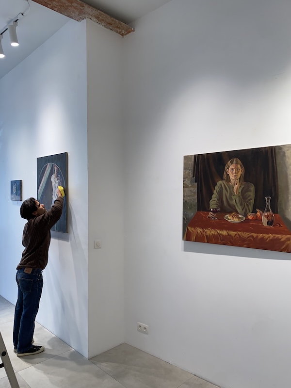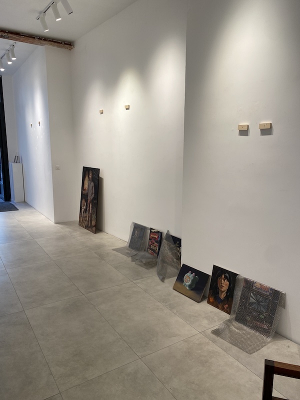 The portraits in the series are about “chance” encounters, or rather, they are the result of such encounters. The still lifes are accumulated objects found in the studio. The exhibition raises the question of chance. The people I invited to the studio were sometimes strangers and sometimes friends. But there always turned out to be several “chance” connections. The combination of “Lucky” and “Chance” is also an invitation to reflect on “opportunity”, “chance” and “luck” in relation to morality. The return of animals in the works invites us to reflect on our place alongside animals. If humans have always placed themselves above or outside the causal order because of their rationality, then this exhibition is about the realisation that it is more likely to be otherwise. We could also have been born as pigs. The pig is placed in the centre and feeds its young in the painting. A man is pushed away on the right-hand side of the work. He is Odysseus' father, Laertes, to whom the pig is given as a gift when Odysseus sees his father again after his many wanderings. Here, the focus is on the pig and how we view the animal rather than the narrative of the Odyssey. Pigs are also animals that are believed to have access to the underworld. In ancient Greece, black pigs were often sacrificed to the gods of the underworld. The pig is chthonic. It is connected to the gods and spirits of the earth and the underworld.